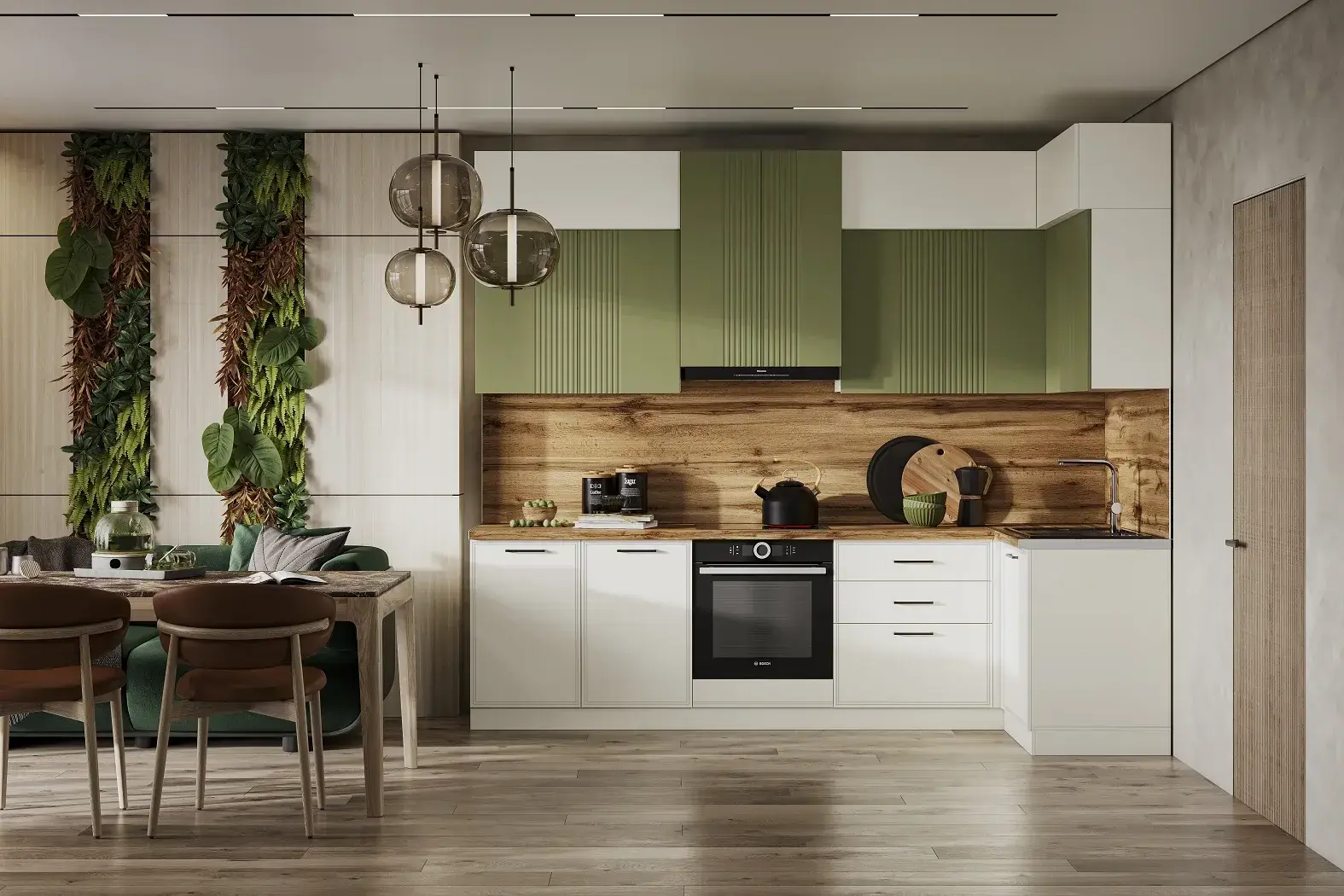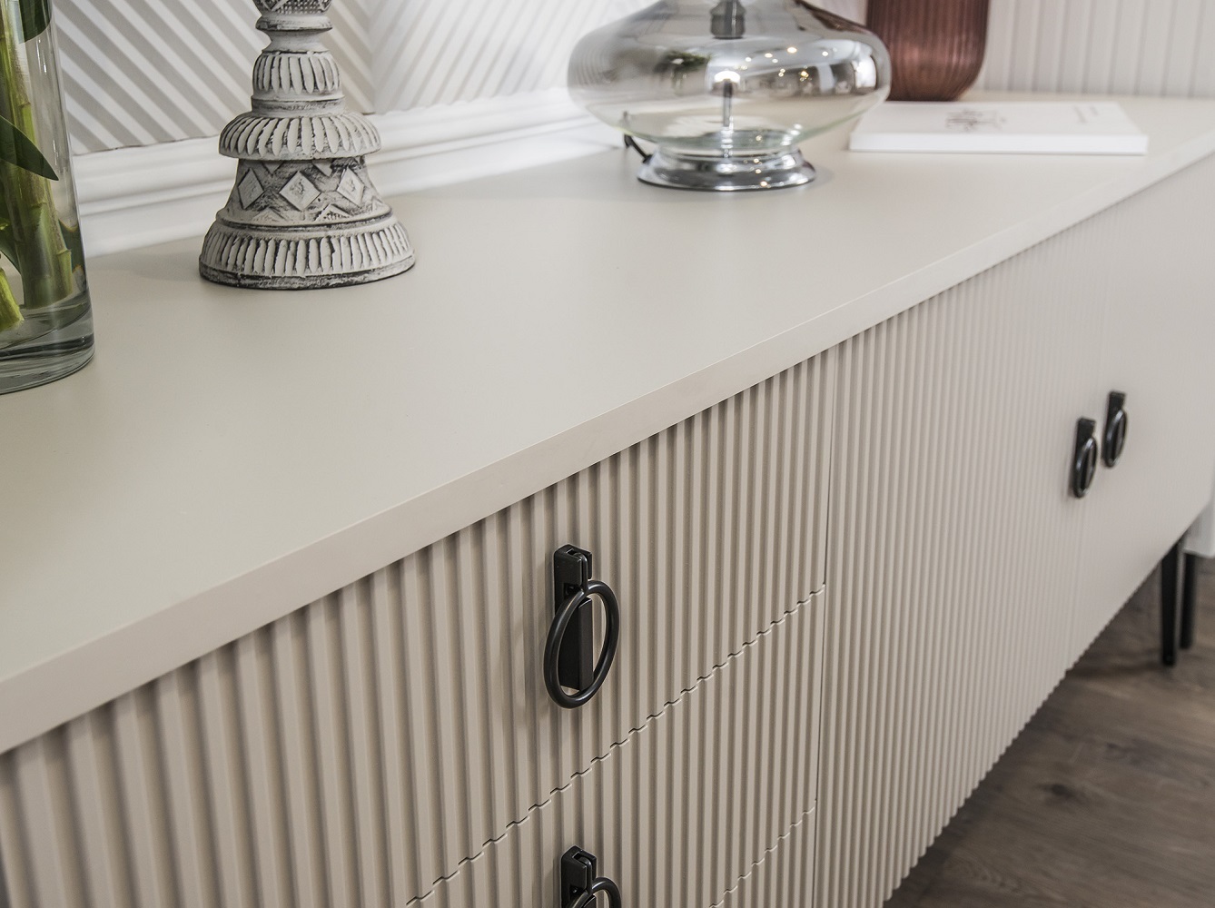 Фрезерованные фасады из МДФ с четкими геометрическими линиями