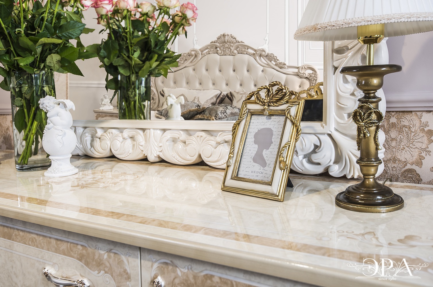 Роскошная отделка: кремовая эмаль Renner/Ica с бронзовой/золотой патиной под матовым лаком