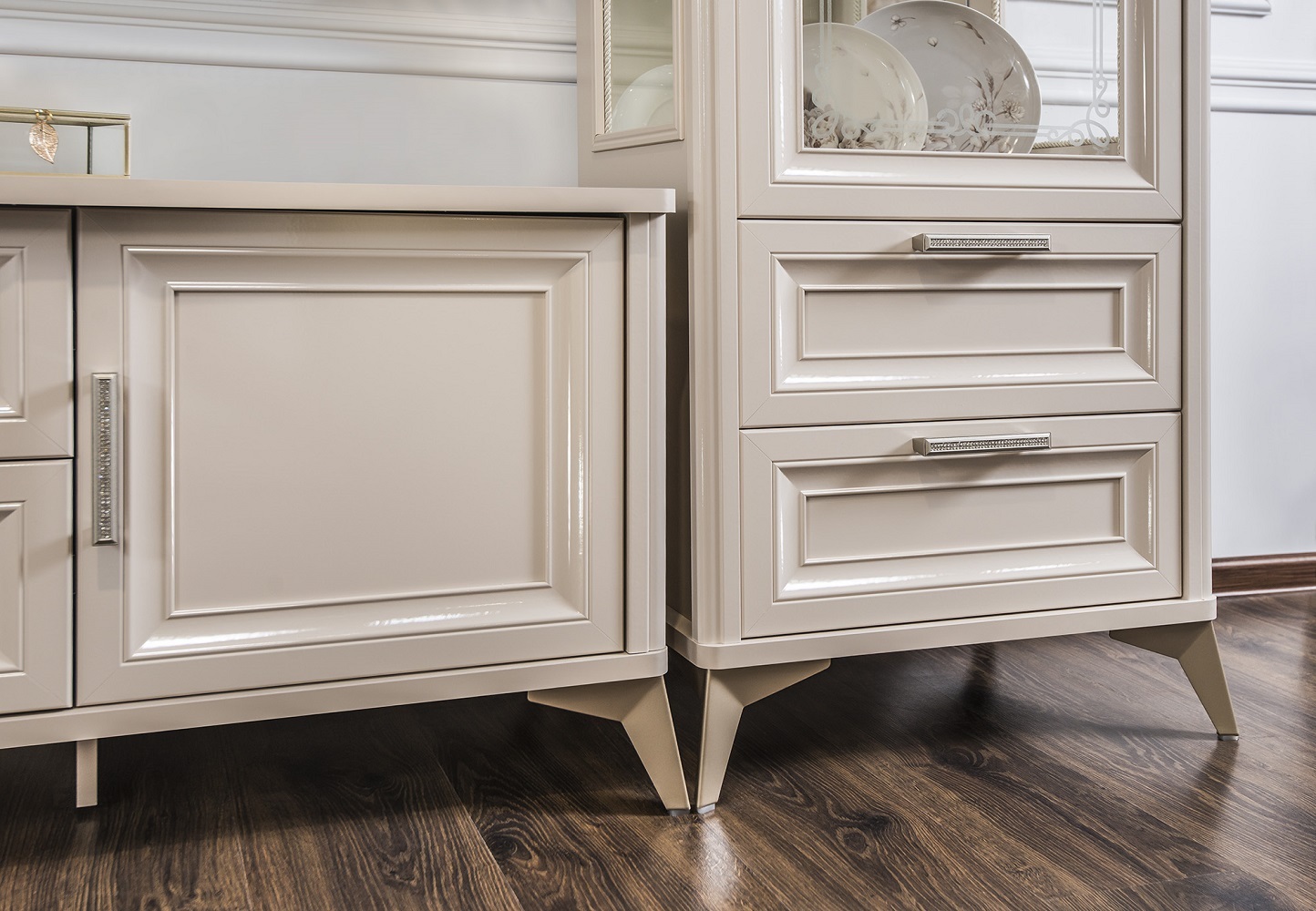 Нежные бежевые фасады с изящными стразами на ручках