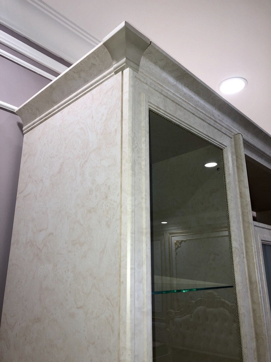 Техническое оснащение: ✓ Петли и направляющие Boyard (бесшумный ход) ✓ Ручки Salice из состаренной бронзы (Италия) ✓ Нагрузка: до 3 кг на стеклянную полку Дизайнерские преимущества: → Эффект ручной работы мастеров-краснодеревщиков → Глубокая игра текстур благодаря многослойной отделке → Музейное качество в современном исполнении Этот гарнитур – идеальное решение для ценителей: • Аутентичной классики с историческим подтекстом • Высокотехнологичных материалов премиум-класса • Функциональной роскоши в повседневной жизни Создайте галерею своих ценностей – где каждая деталь становится произведением искусства.